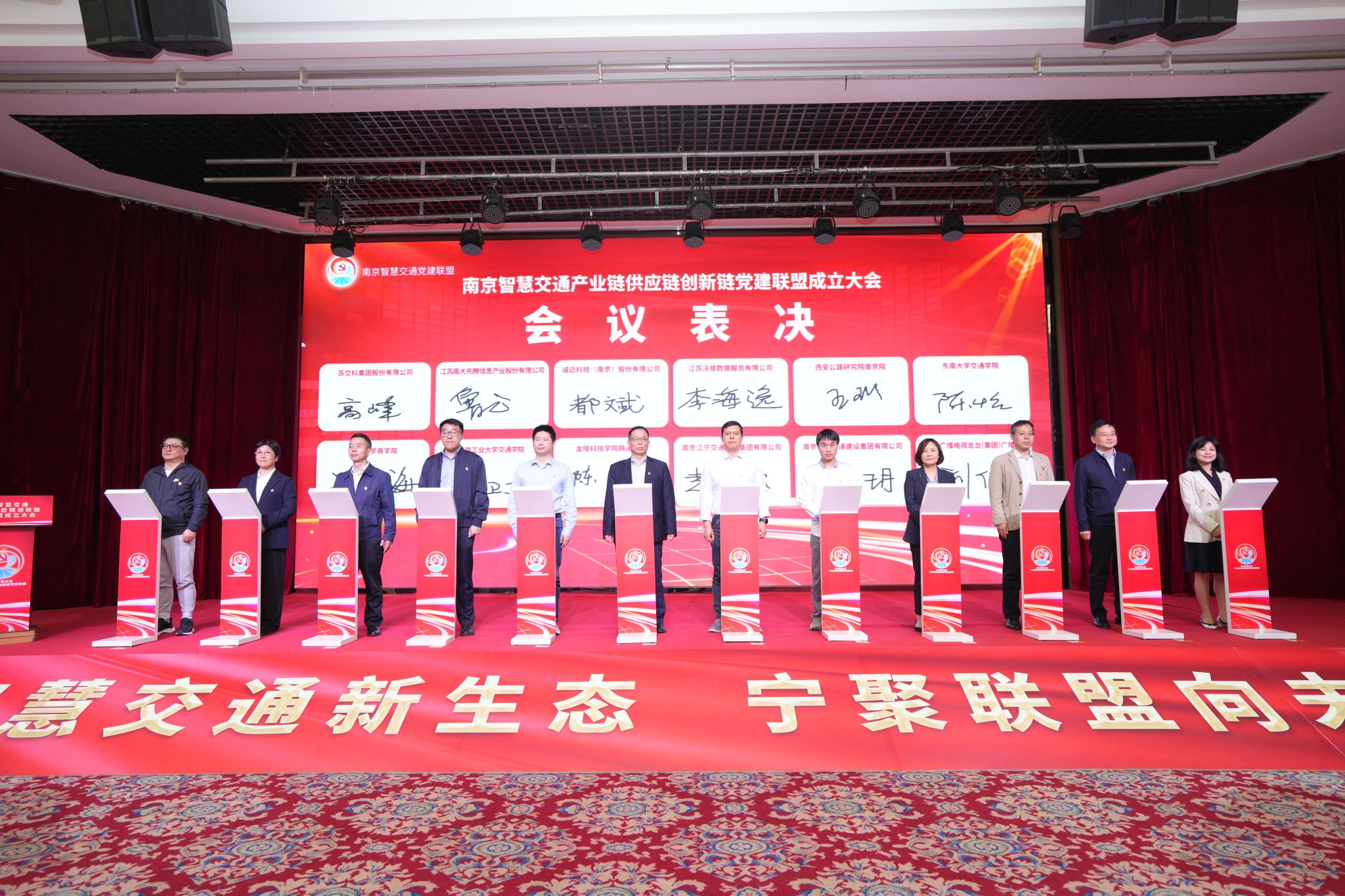 在内的36家交通领域各类企事业单位。联盟立足创新链、服务链、人才链、产业链、资本链“五链融合”,以“六共、四联”拓展思路、丰富载体、推动实践,有效融合产业、科技、服务、资金、人才等资源,坚持科技赋能、创新驱动,搭建市域路桥隧营运管理“数智大脑”,构建“绿色、低碳、智能、安全、可持续”的新时代“交通生态”,培育国内领先、省内一流的“智慧交通样板”,切实发挥交通基础设施支撑保障作用,助力南京加快建设国际性综合交通枢纽城市,为中国式现代化南京新实践作出积极贡献。