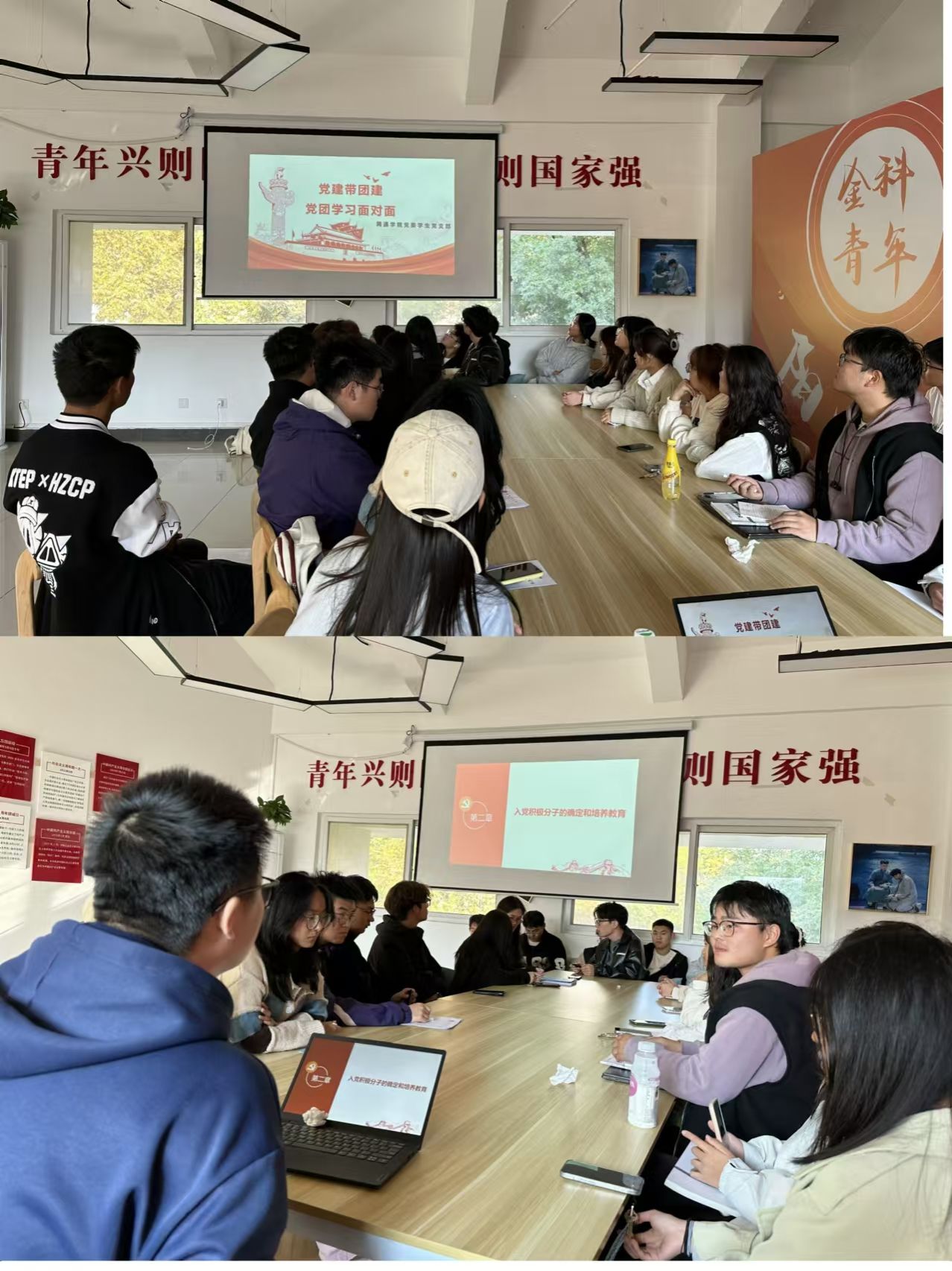 学生党支部书记朱艳红首先带领同学们共同学习了党的二十届三中全会精神和习近平总书记关于青年的重要论述,并详细解读了党员发展的相关文件。朱老师鼓励同学们要主动学习党的理论知识,不断提高政治素养,坚定理想信念、增强爱党爱国意识,用知识武装头脑。