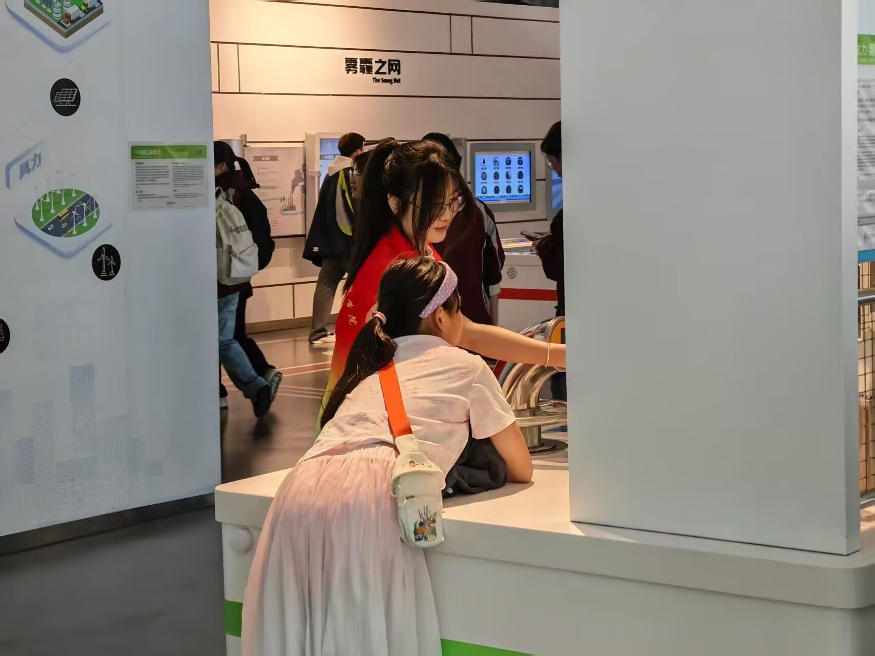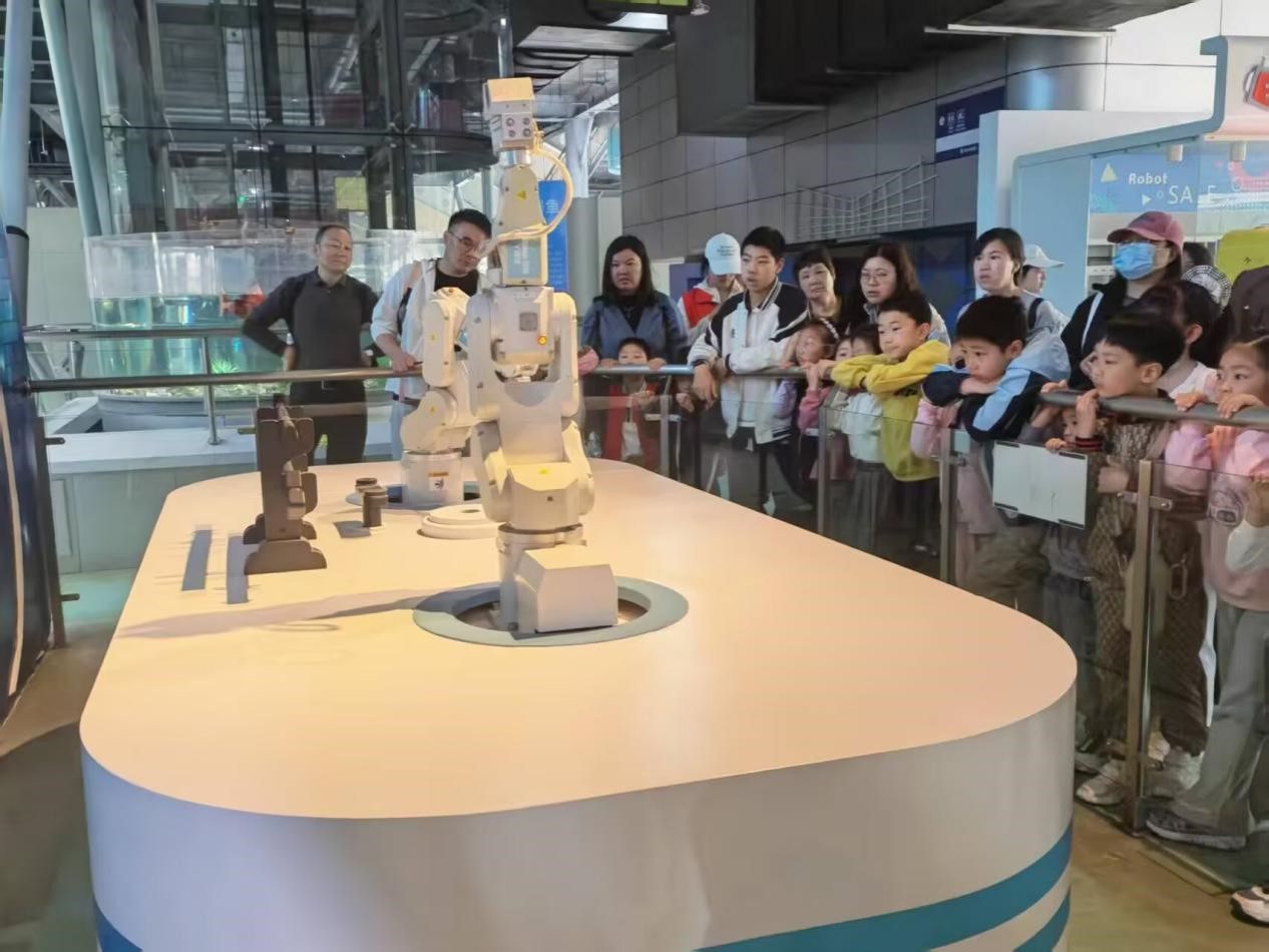 抵达科技馆后,在专业讲解员的带领下,孩子们开启系统化参观学习。讲解员结合馆内“基础科学”“科技乐园”“公共安全”等展区展品,用生动通俗的语言深入浅出讲解科学知识,引导孩子们亲手操作互动装置,直观感受科技的神奇魅力。志愿者们化身“陪伴员”与“引路人”,一边协助讲解员维持秩序、解答疑问,保障参观有序开展;一边结合自身专业,为孩子们补充通信技术、网络原理等相关知识,分享大学学习经历,传递“知识改变命运,科技成就未来”的理念。