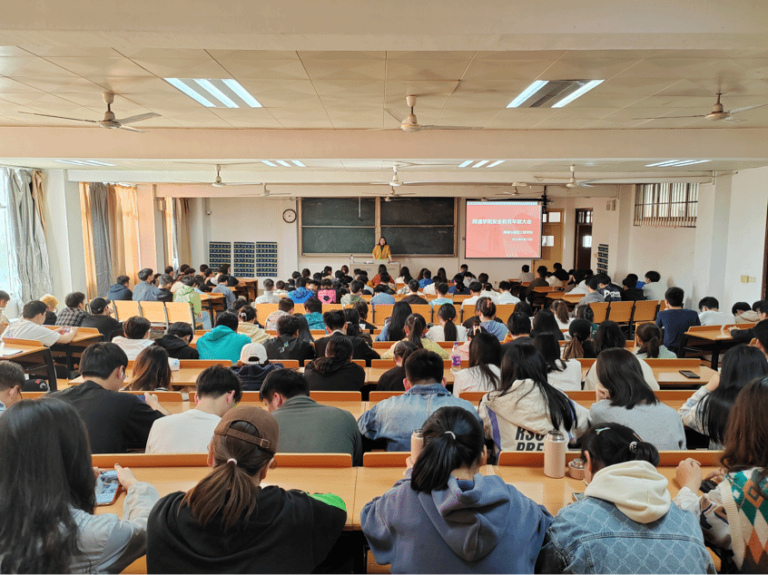 学工办主任郑灵敏老师以及大三年级全体学生参会,辅导员朱艳红老师主讲。