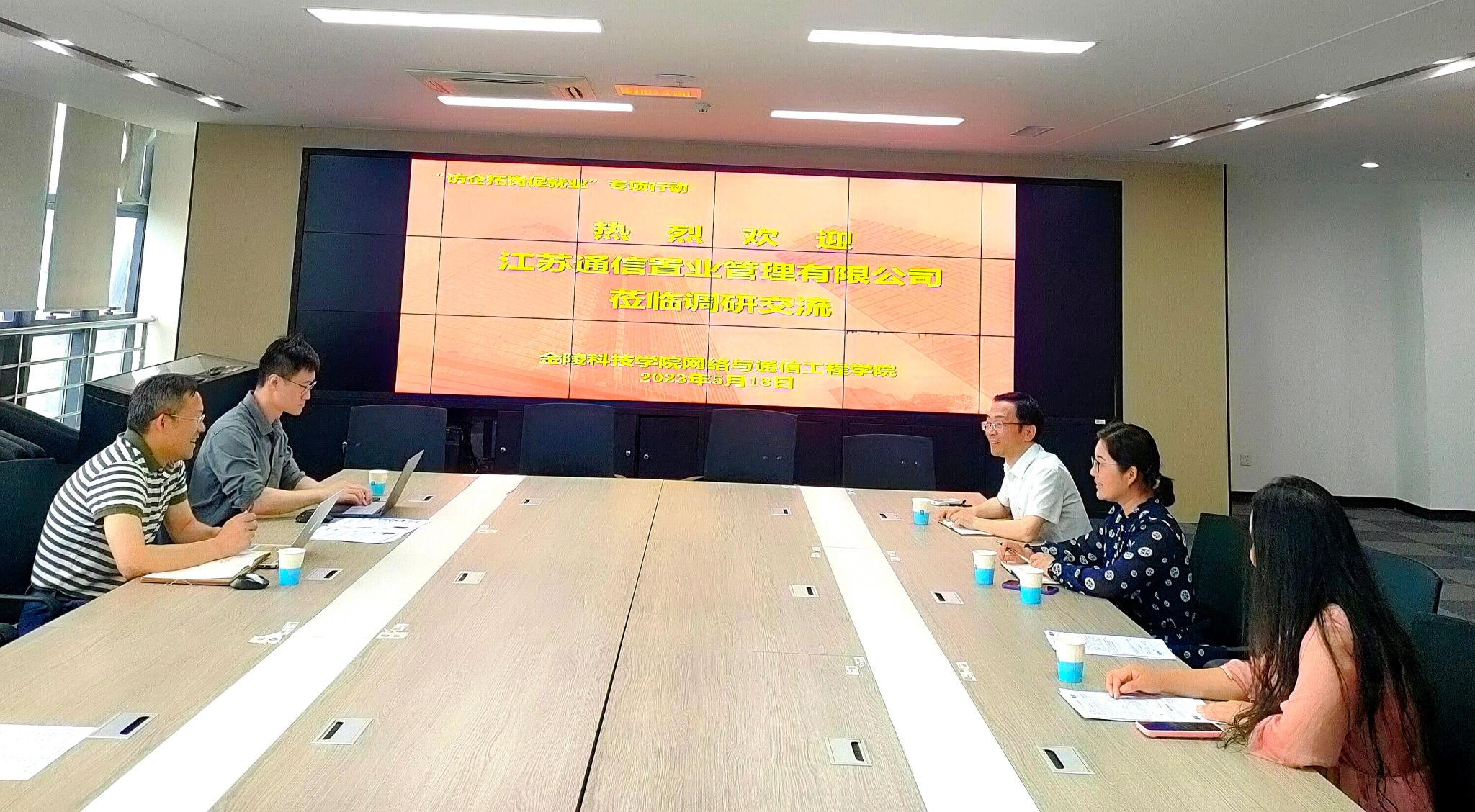 邀请江苏通信置业管理有限公司到学院交流座谈。座谈会在科技楼1号楼1910会议室召开,学院党委副书记董宇,副院长王池社,就业干事以及毕业班辅导员参加交流座谈。