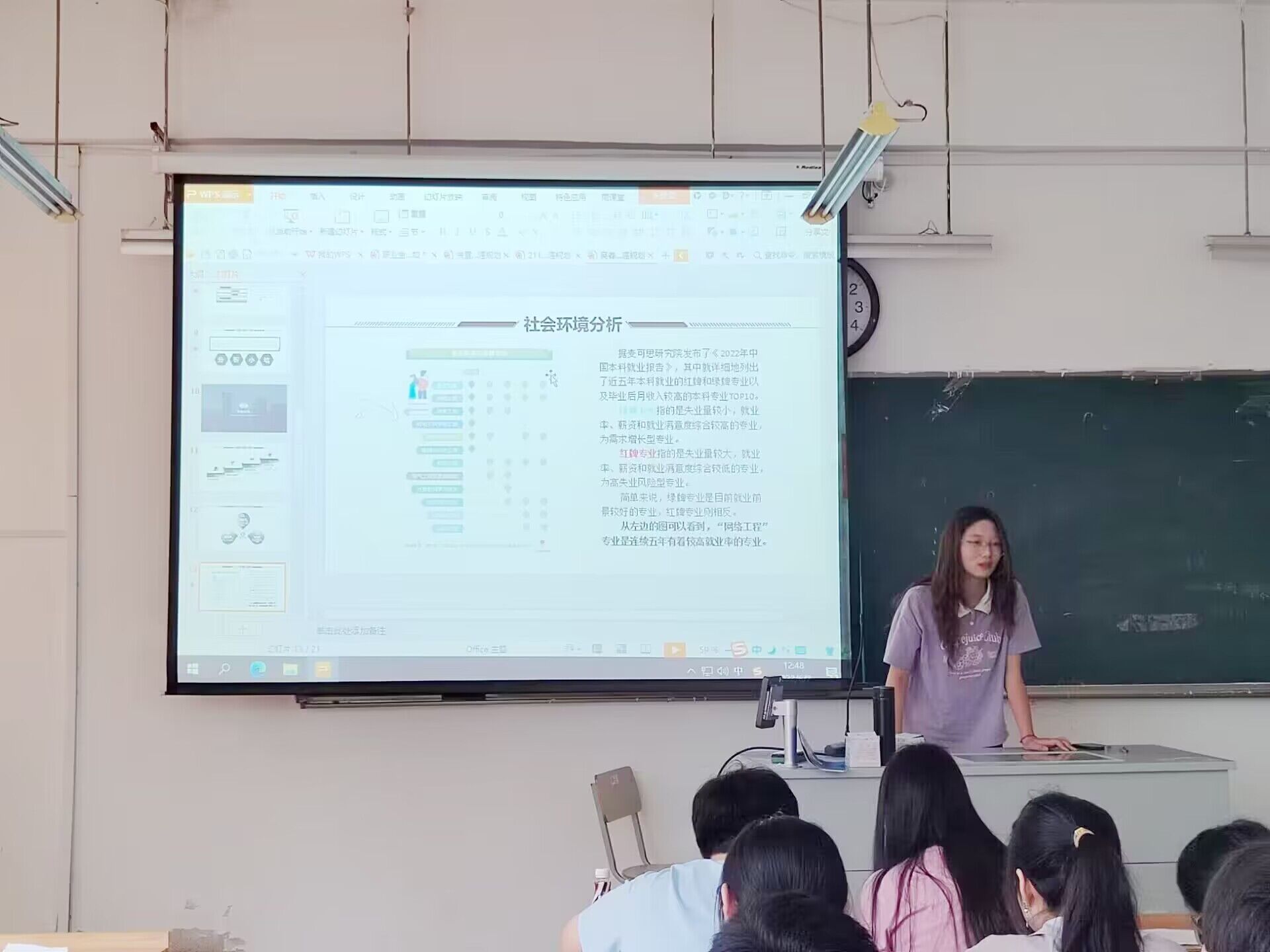 在1204教室举办大学生职业生涯规划比赛决赛。辅导员高园老师、学习部长孙思妍,生活部长王尚阳,文体部长吕天杰,宣传部长贾静文担任此次大赛评委。