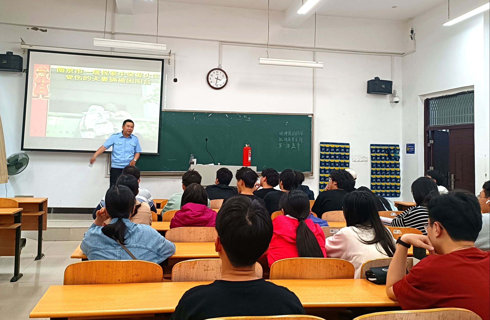 举办消防安全知识讲座,讲座由南京安民防火教育培训中心高级教员金涛担任主讲,负责实验室安全和学生安全工作的教师以及各班级安全员参加了本次讲座。