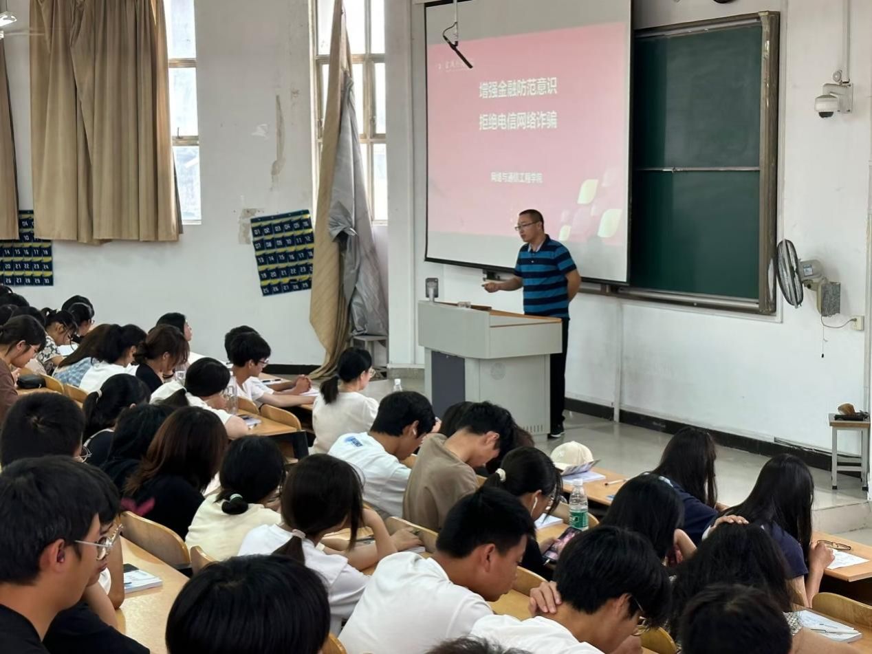 姚主任围绕实验室安全提出了详细的注意事项及要求,他引用历年来实验室安全失误酿成的悲惨案例,提醒新生们必须遵守实验室规章制度,注意用电安全。辅导员吕传振老师就“防范电信网络诈骗”主题介绍了常见电信网络诈骗类型,提醒大家注意防范电信网络诈骗新骗局。新生辅导员袁彩霞从环境适应、生活适应、角色转换适应、人际关系适应四个角度帮助新生提高大学生活适应能力,达到生理、心理与社会性的统一。
