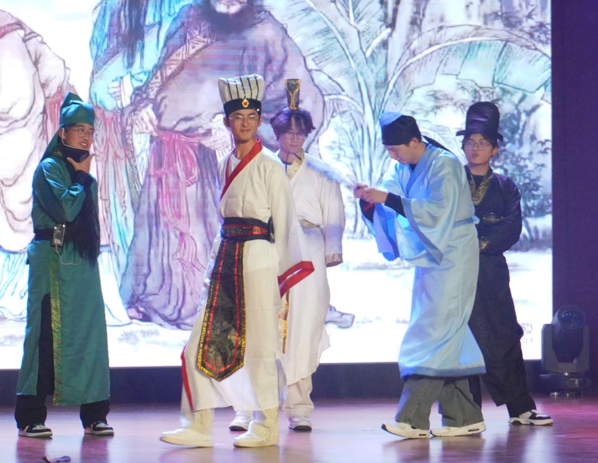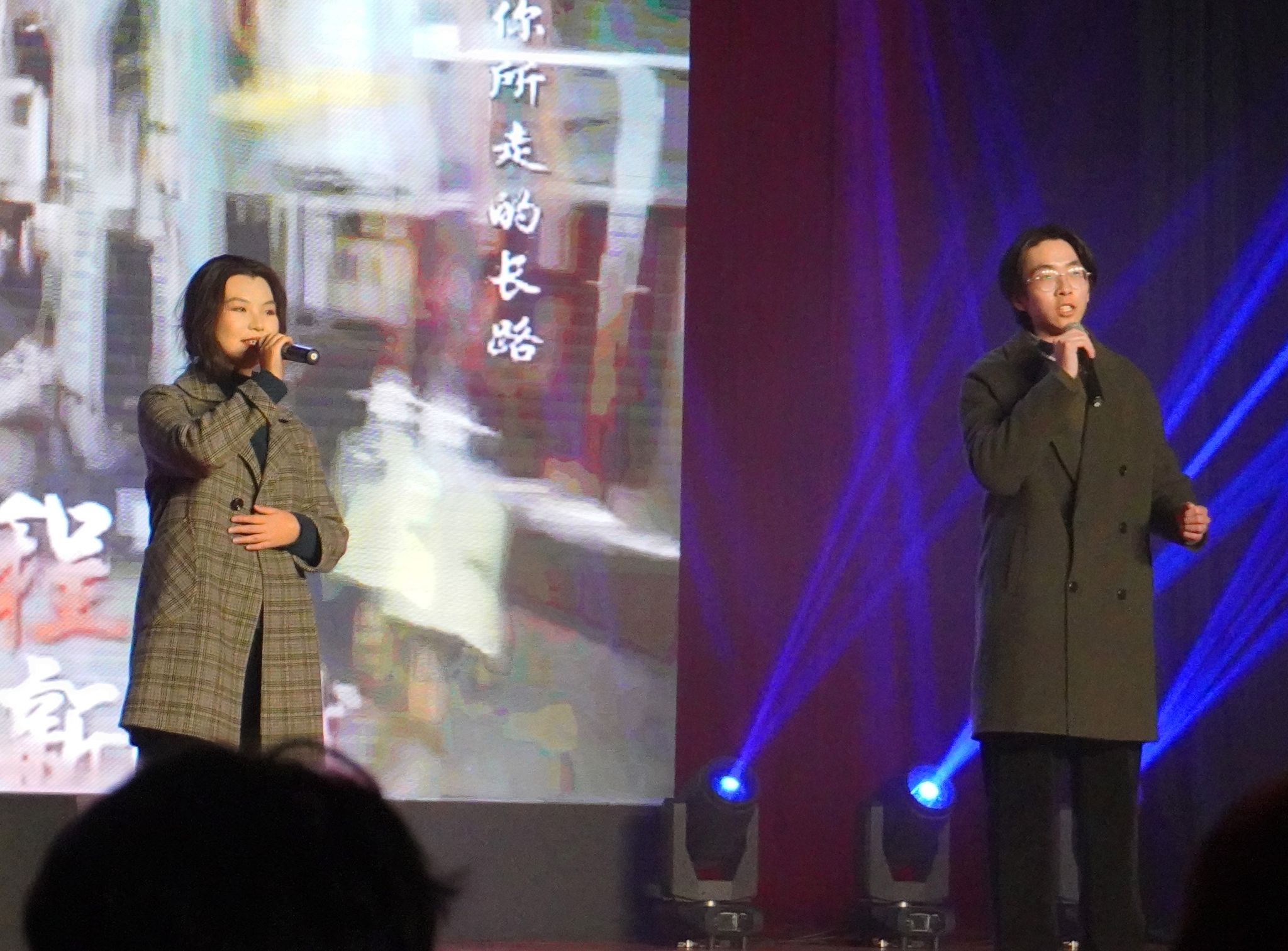 同学排演了三个节目,其中小品《玩转三国之先生请出山》融入了当代大学生学习、生活等方面的元素,因其贴近学生生活的剧情,赢得了现场观众的热烈掌声。朗诵《跨越百年的承诺》、歌曲《如愿》更是激发起了现场师生的爱国主义情感和对中国特色社会主义事业的自信自豪之情。其他学院同学们也带来了异彩纷呈的节目,让现场观众大饱眼福,除此之外,精心设计的互动游戏与抽奖环节将晚会气氛推向了高潮,师生们齐聚一堂共贺新年,欢声笑语不断,整个礼堂洋溢着浓厚的节日氛围。