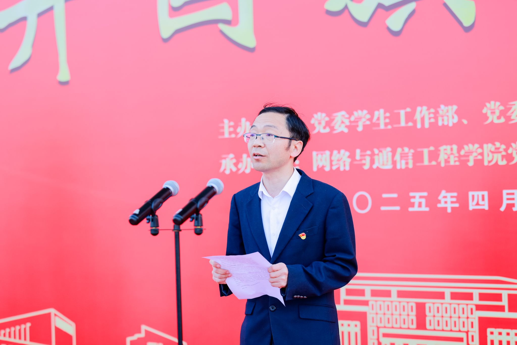 院长王池社以《青春之我,筑科技强国之梦》为主题进行讲话,围绕“科技报国的时代使命”“扎根专业的奋斗路径”“红色基因的精神传承”三个维度激励学生,希望同学们要以扎实的专业能力服务国家需求,在新时代科技强国的征程中贡献青春力量。