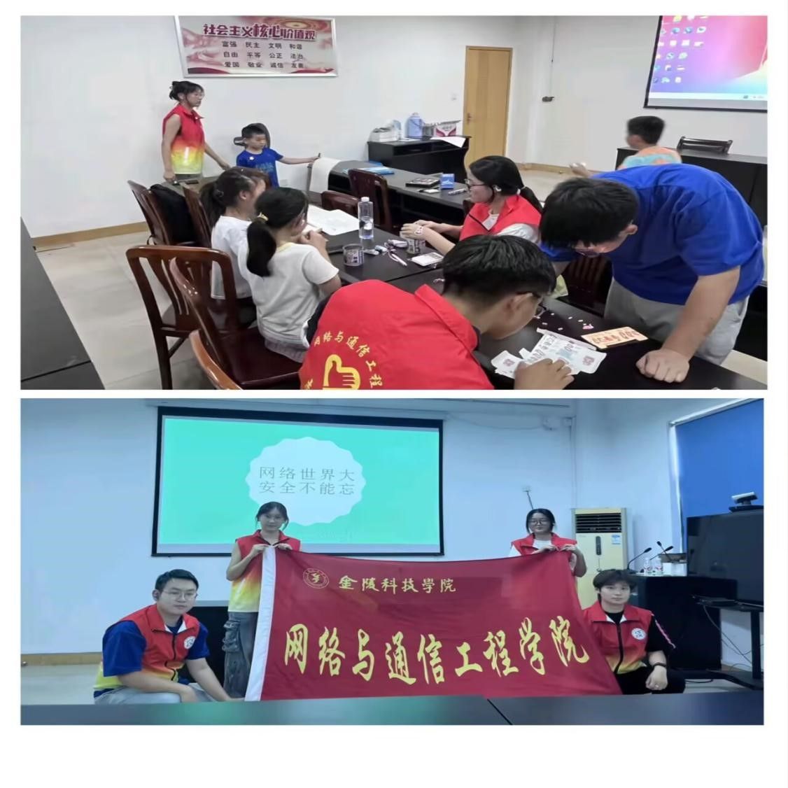 专业护航,筑牢网络“防火墙”:同学们充分发挥专业优势,精心设计了贴近儿童认知的“免费皮肤陷阱”、“游戏好友借钱骗局”等情景剧,深入浅出地讲解信息传输原理、密码安全重要性及公共Wi-Fi风险识别。他们重点讲解了个人信息保护技巧和遭遇网络风险的求助途径,为“小网民”们筑起坚实的安全防护盾。