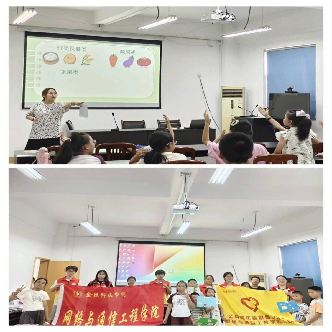 慧眼识“食”,培养健康“小当家”: 同学们从与孩子们共读饮食安全绘本开始提出饮食安全主题,通过“食品标签侦探”游戏,教会孩子们辨识生产日期、保质期、配料表等关键信息,通过生活小知识互动问答,直观讲解健康的饮食选择。孩子们还动手制作食物分类小手工,在实践中将食品安全知识内化为健康生活的习惯。