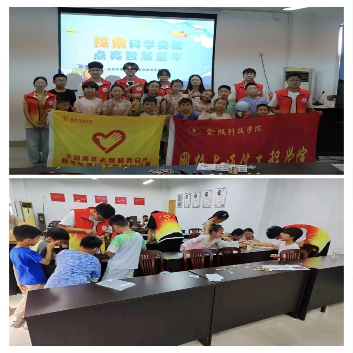 探索奥秘,打造科学“实验室”: 同学们在课堂上开设了“小小科学家实验室”,将工程思维转化为趣味探索,通过趣味实验激发少年儿童的好奇心与探索欲,鼓励他们用心观察身边的事物和现象,探索科学的奥秘。在实验室和手工制作中,同学们鼓励孩子们像“小工程师”一样思考和动手,引导他们动手尝试“气球火箭”和“气球静电吸附”实验,动手组装简易录音机和太阳能月球车模型,在惊奇与欢笑中揭示了科学奥秘。