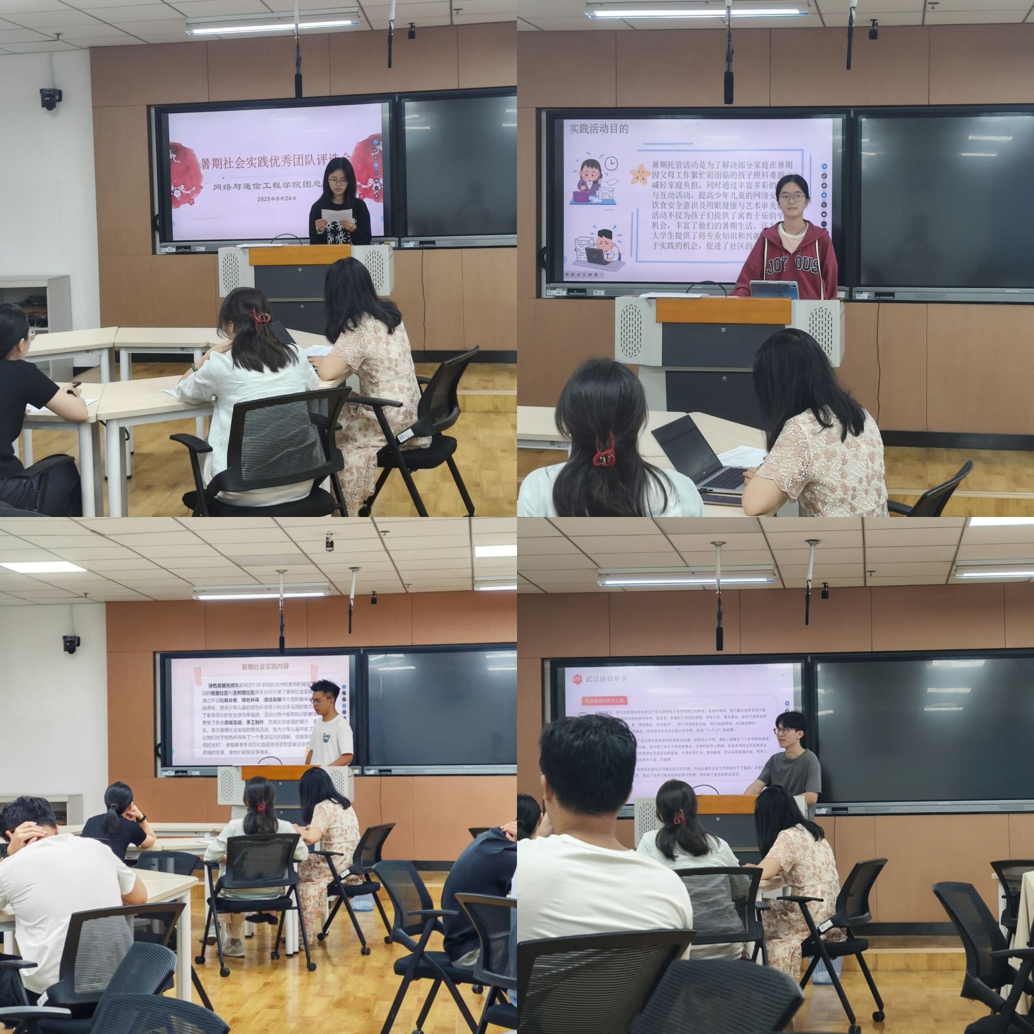 在科技楼4号楼604-1实验室召开了暑期社会实践优秀团队评选答辩会,共有6支实践团队参加汇报评比,会议邀请了综合办主任朱蕾、辅导员袁彩霞和朱艳红担任评委,各团队代表、23级和24级各班团支书参加了会议。