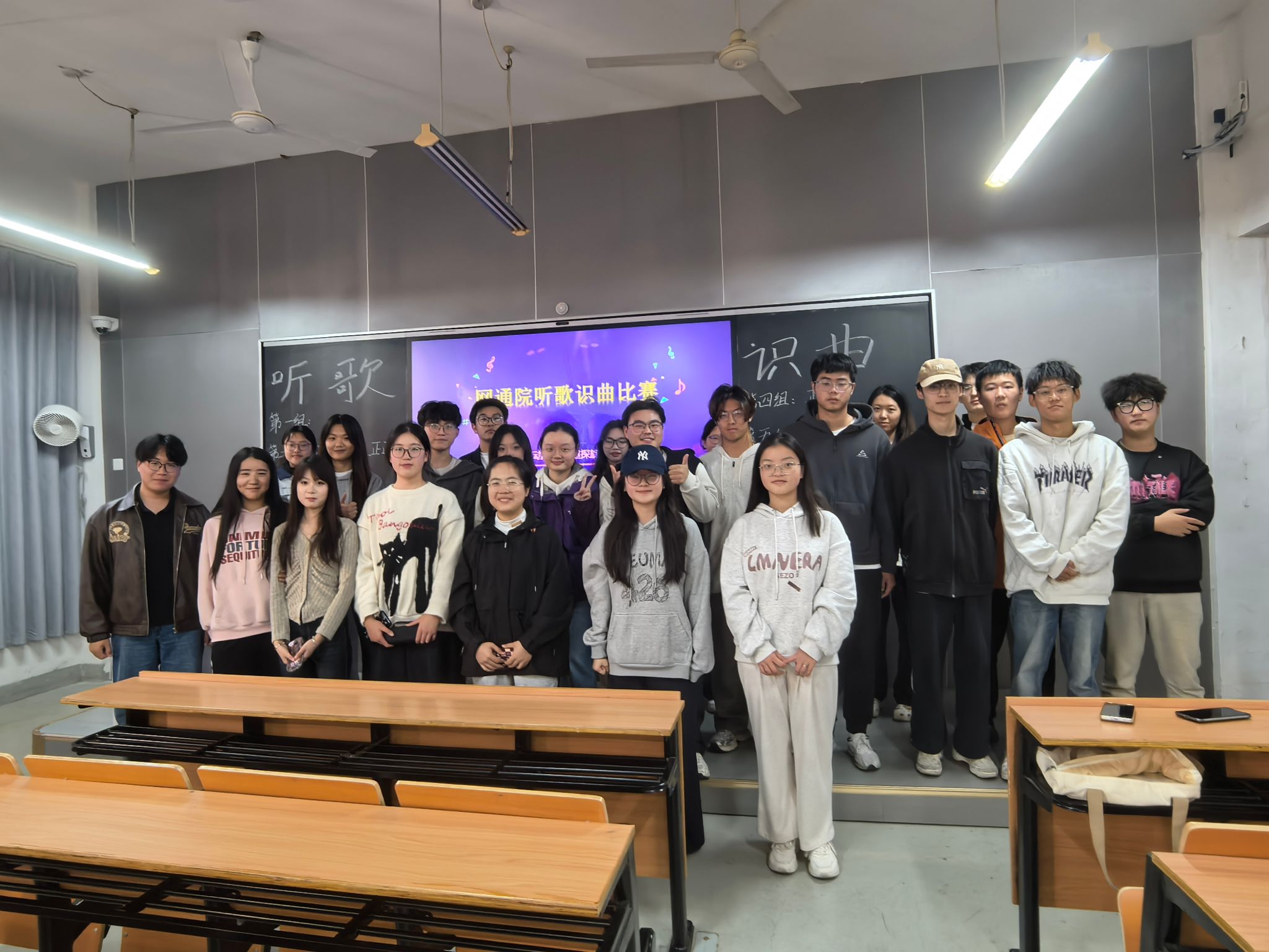 在崇德楼2213教室举办了一场别开生面的“听歌识曲”音乐挑战赛。本次活动吸引了全院各年级音乐爱好者的参与,现场气氛热烈,欢声笑语不断。