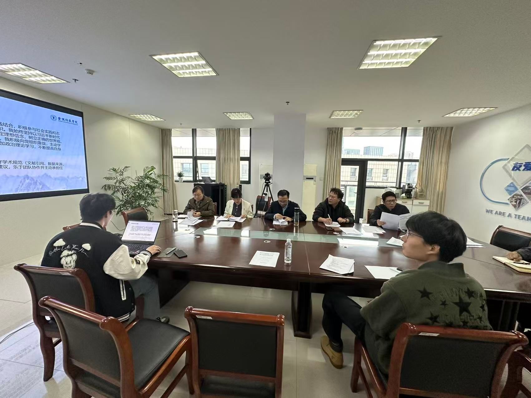 在科技楼4号楼616会议室开展2023级电子信息专业硕士研究生中期考核工作。由校内5位专家组成考核组,2023级电子信息专业硕士研究生张彪、张峻华、唐凌哲参加考核。3名同学从思想政治素质、课程学习、开题报告、学位论文进展、学术成果等方面全面总结了入学以来的主要工作。考核小组在听取研究生汇报基础上,按照考核标准,对每位研究生的中期考核结果做出评定。考核组认为,3名研究生思想政治素质坚定,完成了研究生阶段课程学习内容,并完成了与学位论文相关的50%以上的工作内容,同意通过中期考核。与会专家结合3名同学科研现状,对存在的问题进行了分析并给出改进意见和建议。