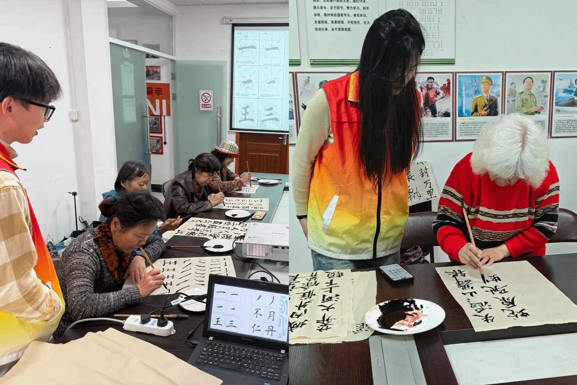 志愿者,开展了一场老年人书法指导与书写活动,既丰富了辖区老年人精神文化生活,又让社区老人在笔墨书香中感受传统文化魅力。