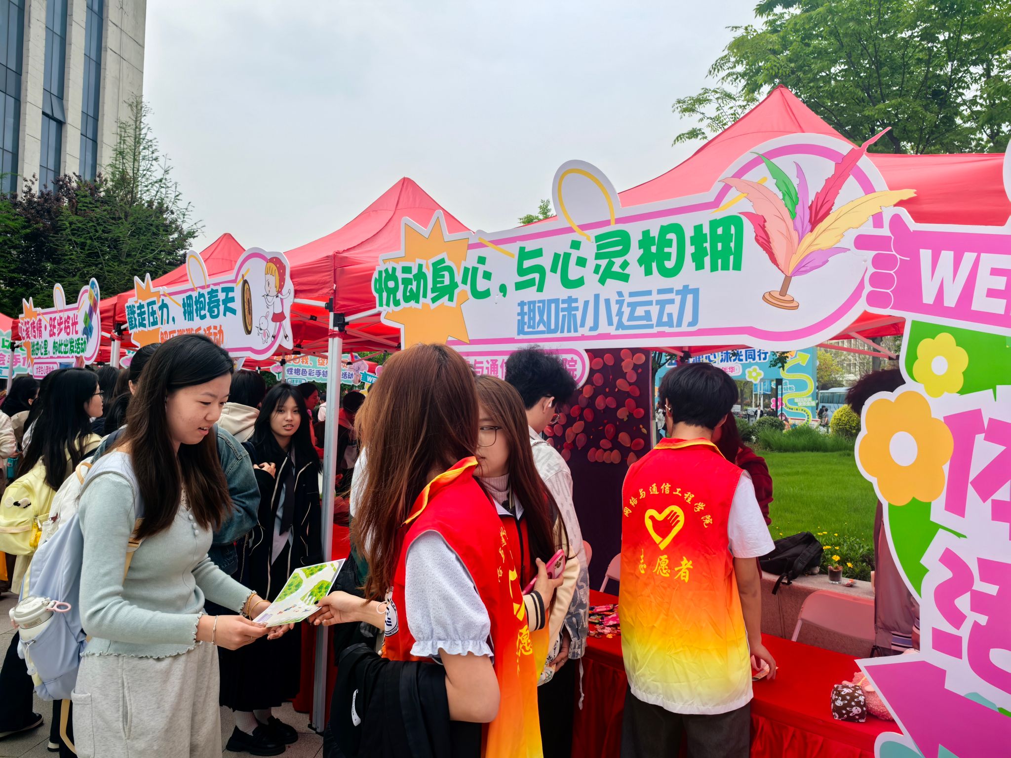 微光心理社以“悦动身心,与心灵相拥”为主题,精心布置特色摊位、设计趣味活动,吸引了同学们驻足参与。