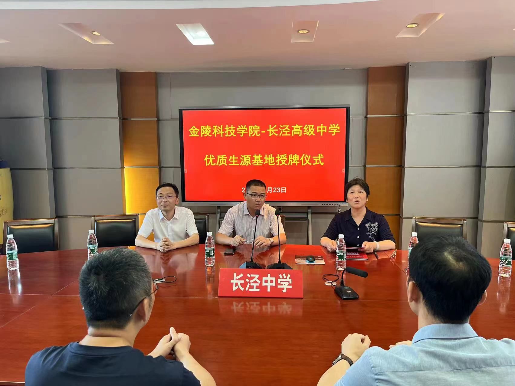 6月23日上午,主播视频 党委书记陈健、副院长王池社、通信工程系副主任金秀峰等人一行来到江苏省江阴长泾高级中学举办2023年招生咨询会,并代表主播视频 与长泾高级中学举行“优质生源基地”授牌仪式,长泾高级中学校长杨风楼、副校长周鎏云等出席仪式。